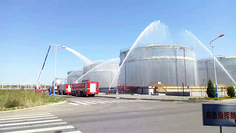 這次演練的地點是一家規模比較大的化工企業、我們出動了公司的水罐消防車、泡沫消防車、以及搶險救援消防車、消防局也出動了高噴消防來聯合演示、對油庫與化工倉等進行滅火演練、這家企業也組織了各類員工前來觀戰;以學習后期如何應對這種突發狀況。
